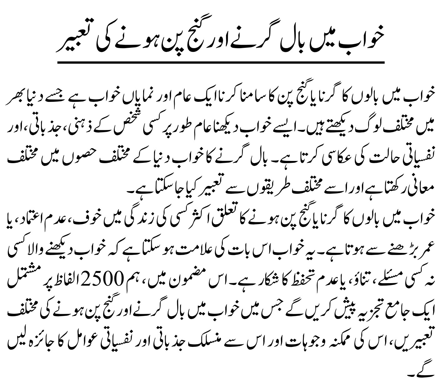 Hair loss in dreams can symbolize stress or pressure in life. It indicates that the dreamer is under emotional or mental strain and is trying to cope with demanding situations.