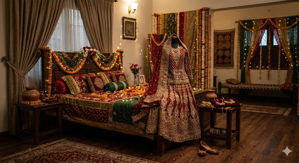 Yeh ek bohat hi dilkash lekin gehra khwab hai jahan aap dulhan ka laal jora, zevarat aur baqi saman dekhte hain, magar un kapron ko pehanne wali dulhan gayab hai. Iski tabeer yeh hai ke aap jin cheezon ki taraf mutawajjah hain unka zahir toh boht khoobsurat hai, magar unki haqeeqat khokhli hai.Aam alfaz mein, aap shohrat, daulat ya kisi aisi cheez ke piche hain jis mein roohaniyat ya haqeeqi sukoon nahi hai. Khali jora is baat ka ishara hai ke duniya ke zahiri rang o roop ne aap ko dhoke mein dala hua hai.Is khwab ke baad ahl-e-ilm yeh guidance dete hain ke zahir parasti se bahir niklein. Insaan ki asiliyat uske kirdar aur aamaal se hoti hai, uske libas ya status se nahi. Apne andar roohaniat paida karein aur aisi cheezon ki qadar karein jin mein haqeeqi paidaari ho.