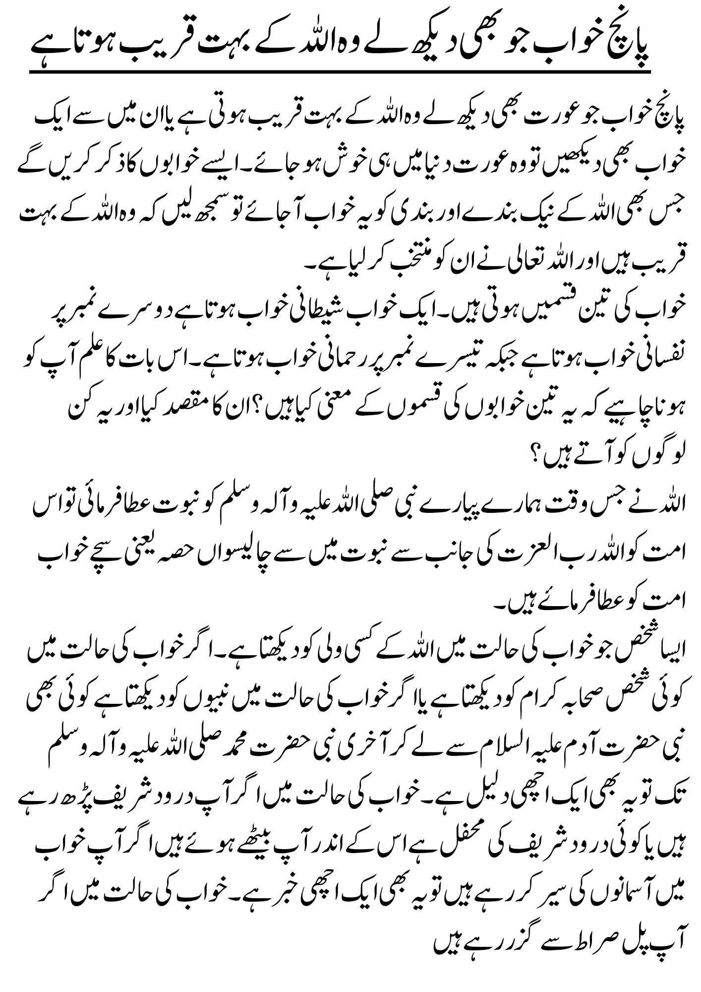 پانچ خواب جو بھی دیکھ لے وہ اللہ کے بہت قریب ہوتا ہے – 2