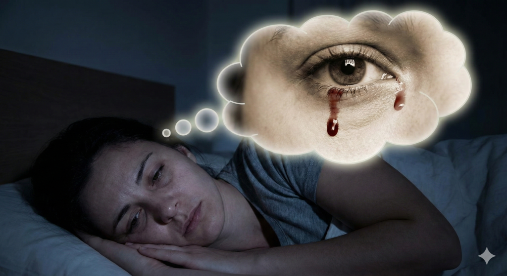 Khwab mein aankhon se aansuon ki bajaye khoon nikalna aur khoon se rona intehai khofnaak aur dil dehla dene wala khwab hai. Bedaari ke baad insan buri tarah ghabraya hua hota hai aur usay lagta hai jaise koi aafat uske sir par khari hai.Roohani ilm aur buzurgon ke nazdeek, khoon ke aansoo rona kisi sangeen gunah par pachtaway, ya kisi badi cheez ke hath se nikal jane par shadeed gham ki alamat hai. Yeh khwab us waqt aata hai jab insan ka zameer andar se usay buri tarah kachokey laga raha ho ya usne kisi ka bohot bada haq mara ho.Aise khwab ko kabhi bhi halke mein nahi lena chahiye. Is ka behtareen hal yeh hai ke fauran Allah se ruju kiya jaye. Agar aap ne kisi ka haq mara hai, to usay wapis karen aur mafi mangen. Sadqa e jariya aur kasrat se istighfar padhna shuru karen taake Allah aane wale waqt mein aazmaishon se bacha lay aur roohani bimarion se shifa naseeb farmaye.