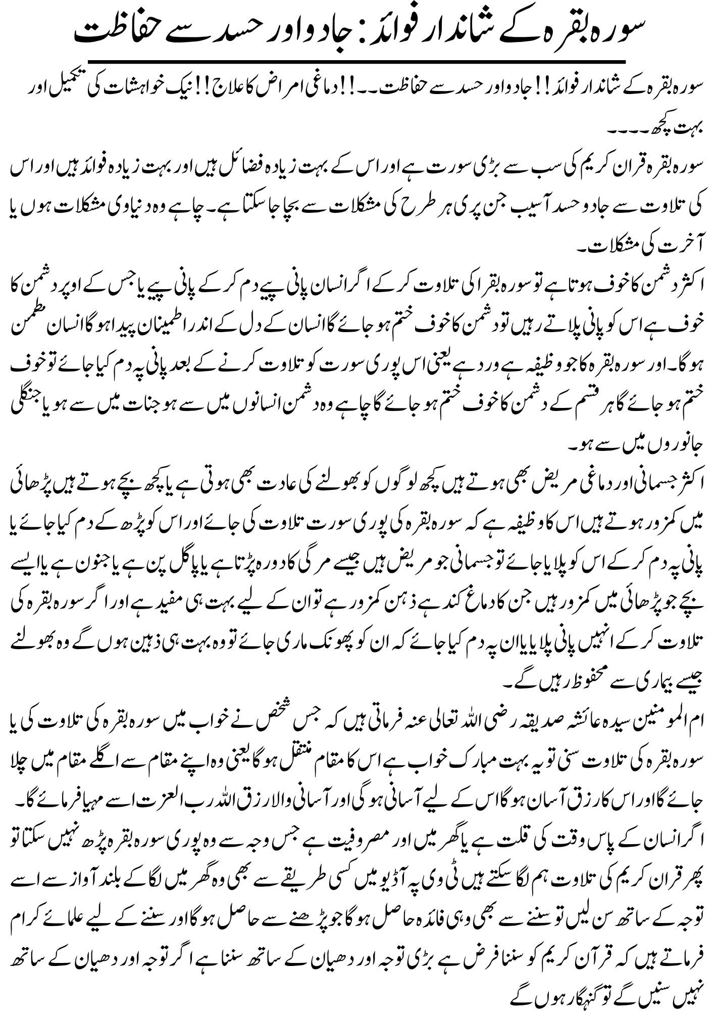 One of the most well-known spiritual benefits of Surah Al-Baqarah is that it protects against sihr (magic), hasad (jealousy), and the evil eye. Scholars recommend: