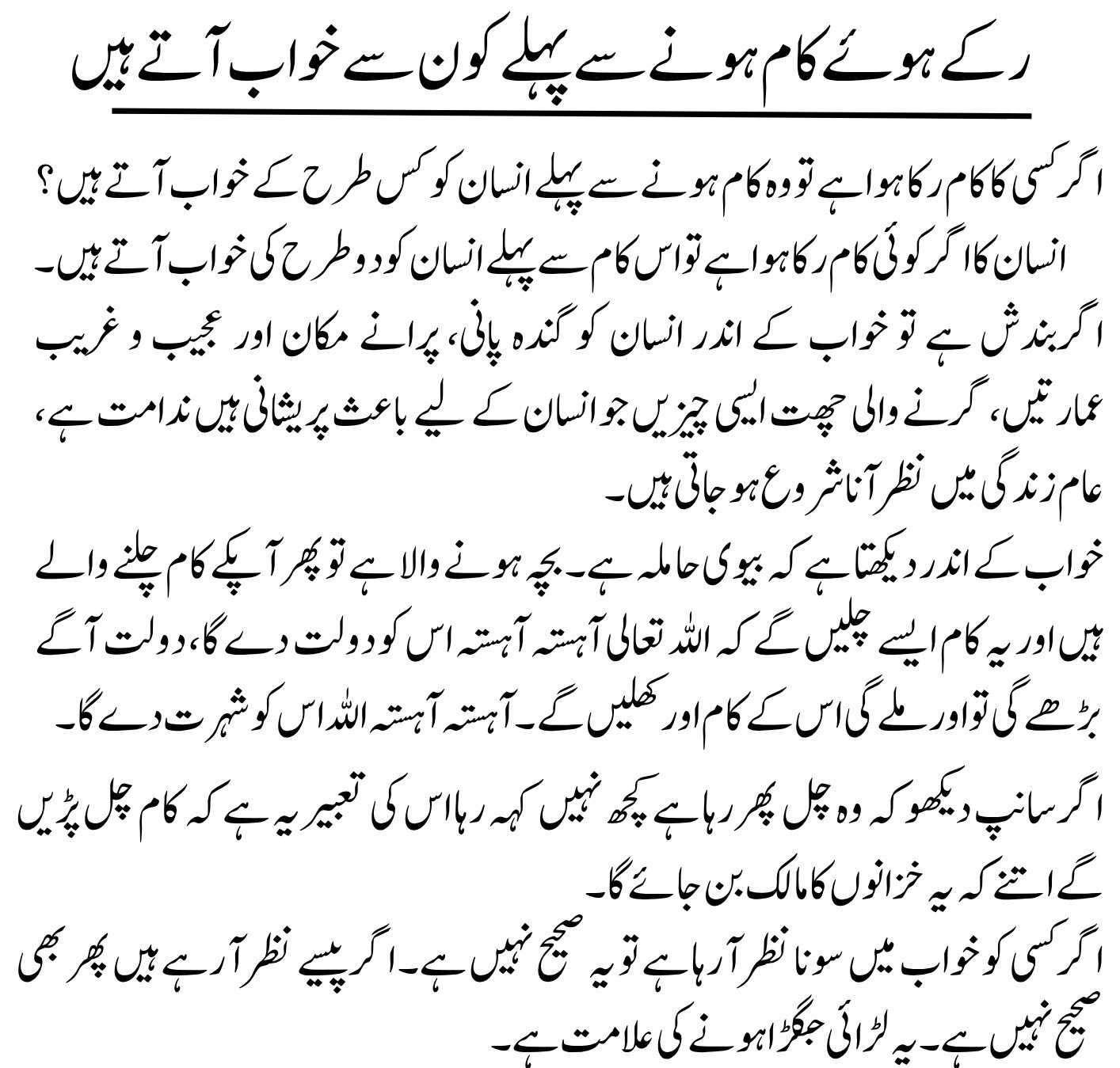 If your work is delayed due to bandish (spiritual blockage) or hidden obstacles, you may see the following types of dreams: